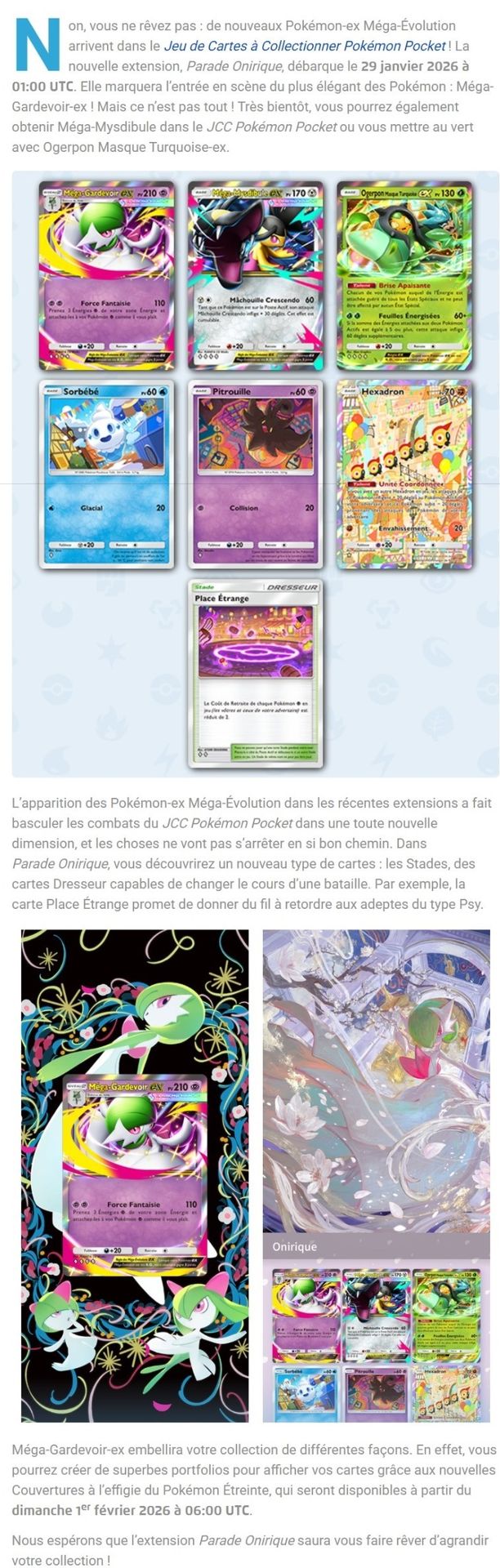 Voici les nouveautés annoncées sur le site https://www.pokemon.com/fr/actus-pokemon/en-avant-pour-la-parade-onirique-du-jcc-pokemon-pocket
